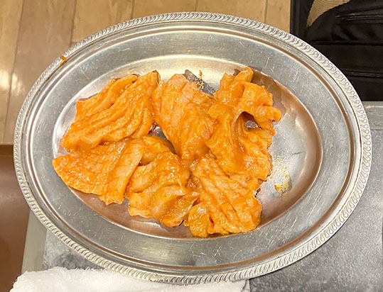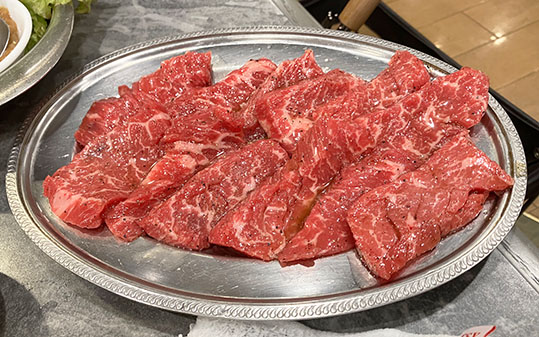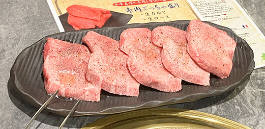 「どうせ食うならうまい肉」というキャッチフレーズを掲げており、信頼できる業者から、産地やブランドにこだわらず、その日の上質な肉を厳選して仕入れているそうです。また冷凍肉ではなく、「生肉」を使用することで「うまい肉」にこだわっているそうです。生肉の場合、仕入れから仕込み、保管に至るまで冷凍肉に比べて手間がかかるそうですが、その手間を惜しまないことで「本来の美味しい肉の味を提供する」そうです。