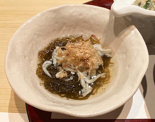 釜揚げしらすと水雲の酢の 鰹出汁ジュレ・糸賀喜