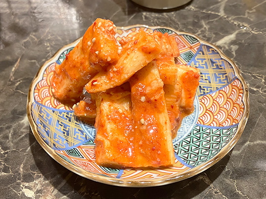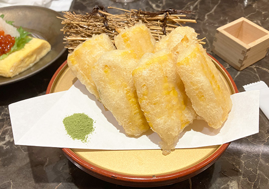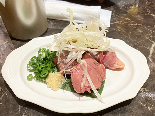 ちなみにお通しは「年貢」と名付けられています。これ以外にも「億万鳥者のポテトサラダ??」、「お金持ちのシーザーサラダ」、「神社ハイボール(ジンジャーハイボール)」など、こだわったネーミングの料理があります。