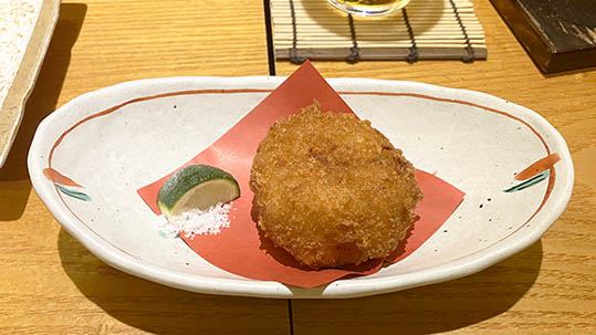 ・比内地鶏のそぼろといぶりがっこの塩コロッケ