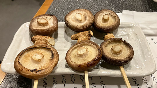 かしら屋を含む「東松山市のやきとり」のお店では、カウンターがお勧めです。席に着くと、辛子味噌が入った容器を運んで来てくれます。テーブルには塩や七味も置いてあります。席について飲み物を注文したら、料理を注文しなくともカシラが最初に2本出てきて、それを食べ終わることには、また1本、無くなると、また1本とわんこそばの要領で手元に届けられます。椀子蕎麦の要領です。わんこ串とでも言うスタイルで、ストップしない限り、ずっとカシラが置かれていきます。