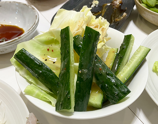 この時点では、料理が選べない、ということが、ちょっと気になりました。都内の食べ飲み放題のお店では、大量のポテトフライ、サラダ、鶏の唐揚げなどを最初に提供されて、これを食べきらないと料理が注文できない、というシステムが多く広まっており、結局、好きな料理を食べられない、ということになることが多いからです。(もっとも、そんな店を選ばなければ良いだけですが)
